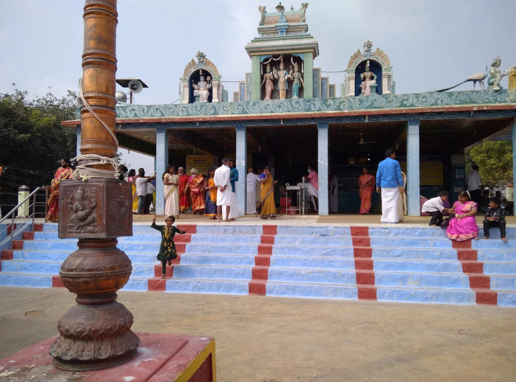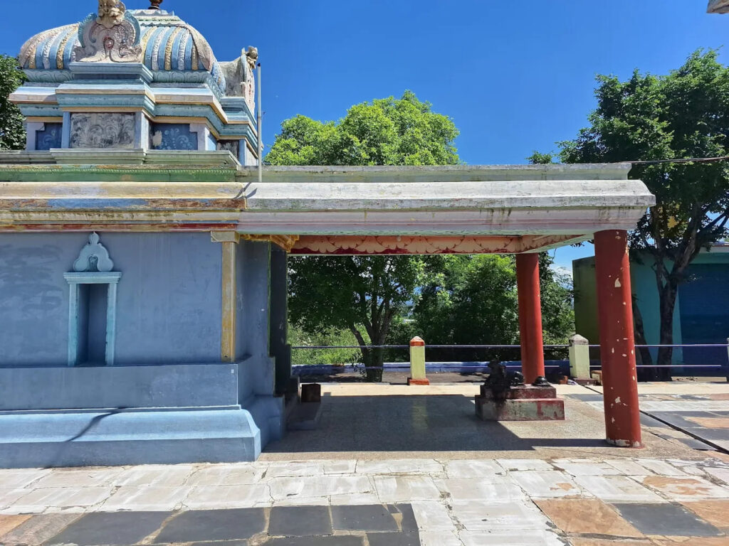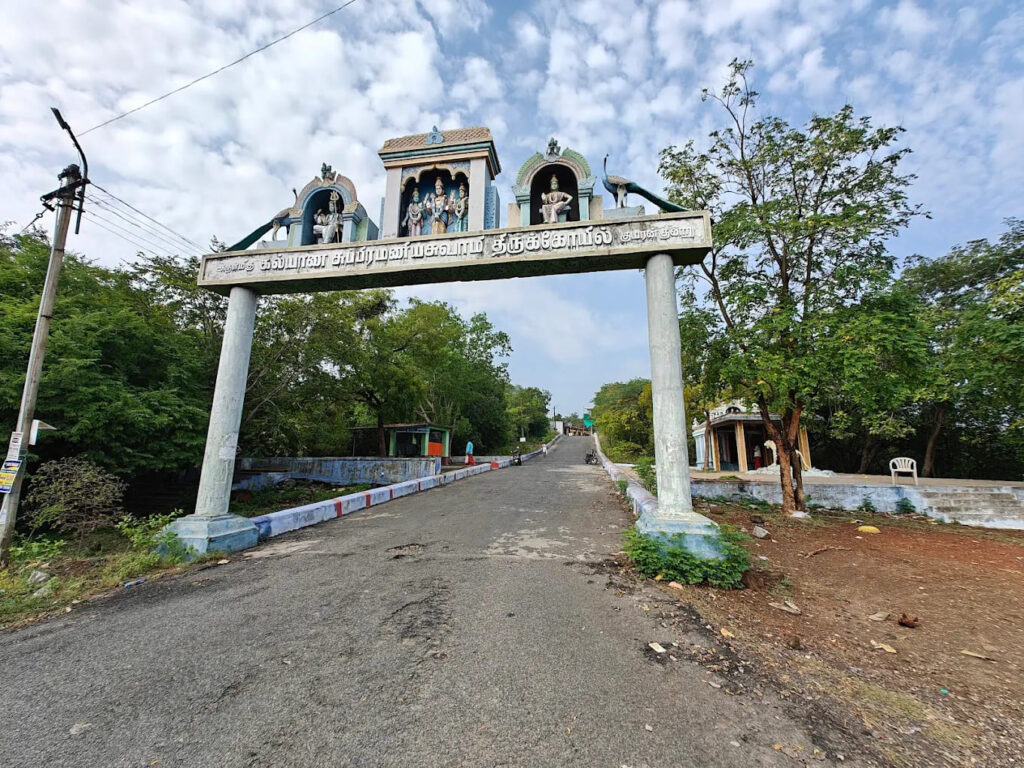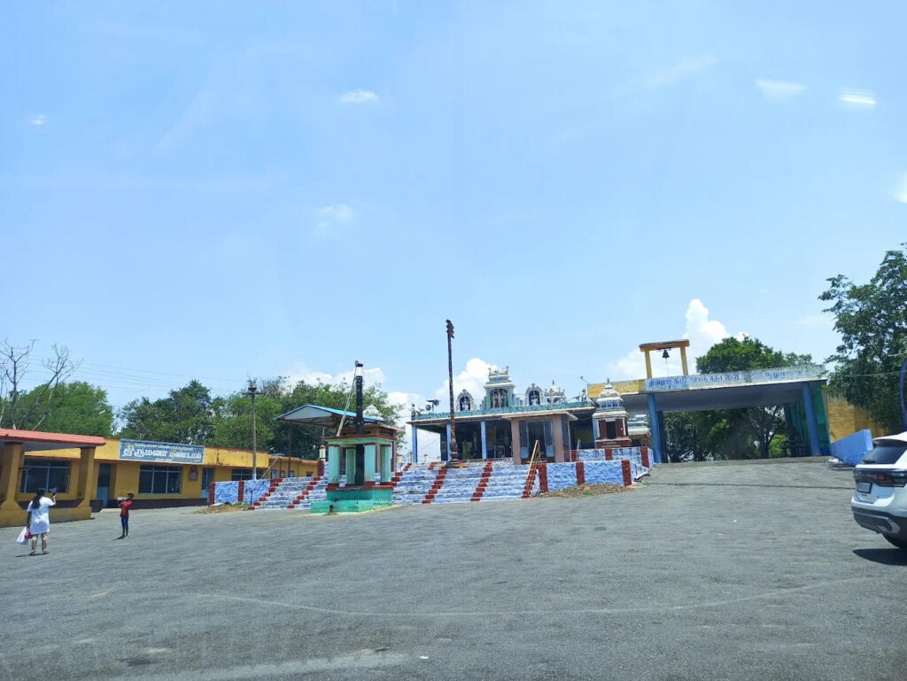 Atop the hill stands the Kalyana Subramanya Swamy Temple, a rare and sacred site where Lord Murugan is seen in divine wedding alankaram alongside his consorts Valli and Devasena. The origin of the temple is steeped in mysticism. Centuries ago, local cowherds discovered a broken idol on the hillside. When they pieced it together, it revealed the form of Lord Murugan. A temple was initially built to house this idol, but when it was further damaged, a blind stranger appeared, advising the villagers to install a new idol with Valli and Devasena, thus giving rise to the present temple structure.